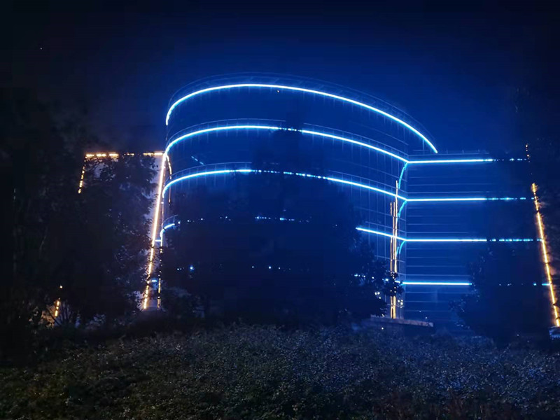 School building decorated with Outdoor Rigid LED Linear Lights manufactured by Shinuo Lighting---partially completed.